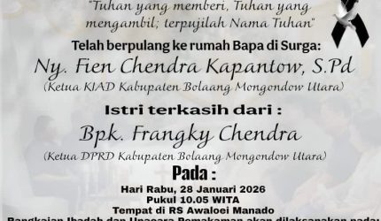 BOLMUT Berpulang ke Rumah Bapa, Ketua KIAD Boltara Akan Dimakamkan Sabtu 31 Januari 2026